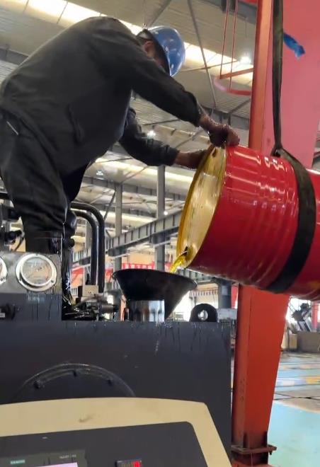 文中介紹是一款630噸三梁四柱液壓機(jī),采用雙缸結(jié)構(gòu)設(shè)計(jì),其工作原理是油泵的液壓油到集成插裝閥塊,通過各種分布的止回閥和安全閥的液壓油缸下腔室或在高壓作用下油,油缸運(yùn)動(dòng)。根據(jù)630噸四柱液壓機(jī)(三梁|雙缸)的工作原理我們知道,液壓油是機(jī)器運(yùn)行不可或缺的部分,那么,使用630噸液壓機(jī)選用哪種液壓油呢?使用前,又需要加多少液壓油呢?