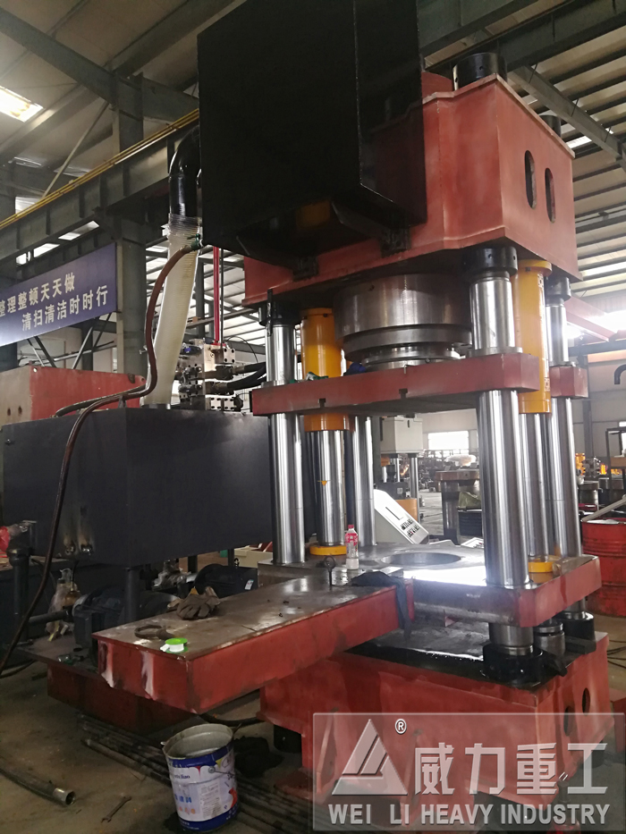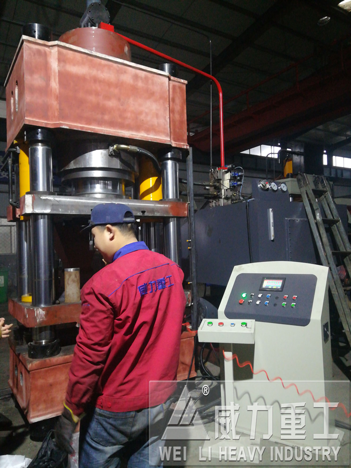山東威力這個630噸四梁四柱液壓機客戶試機: